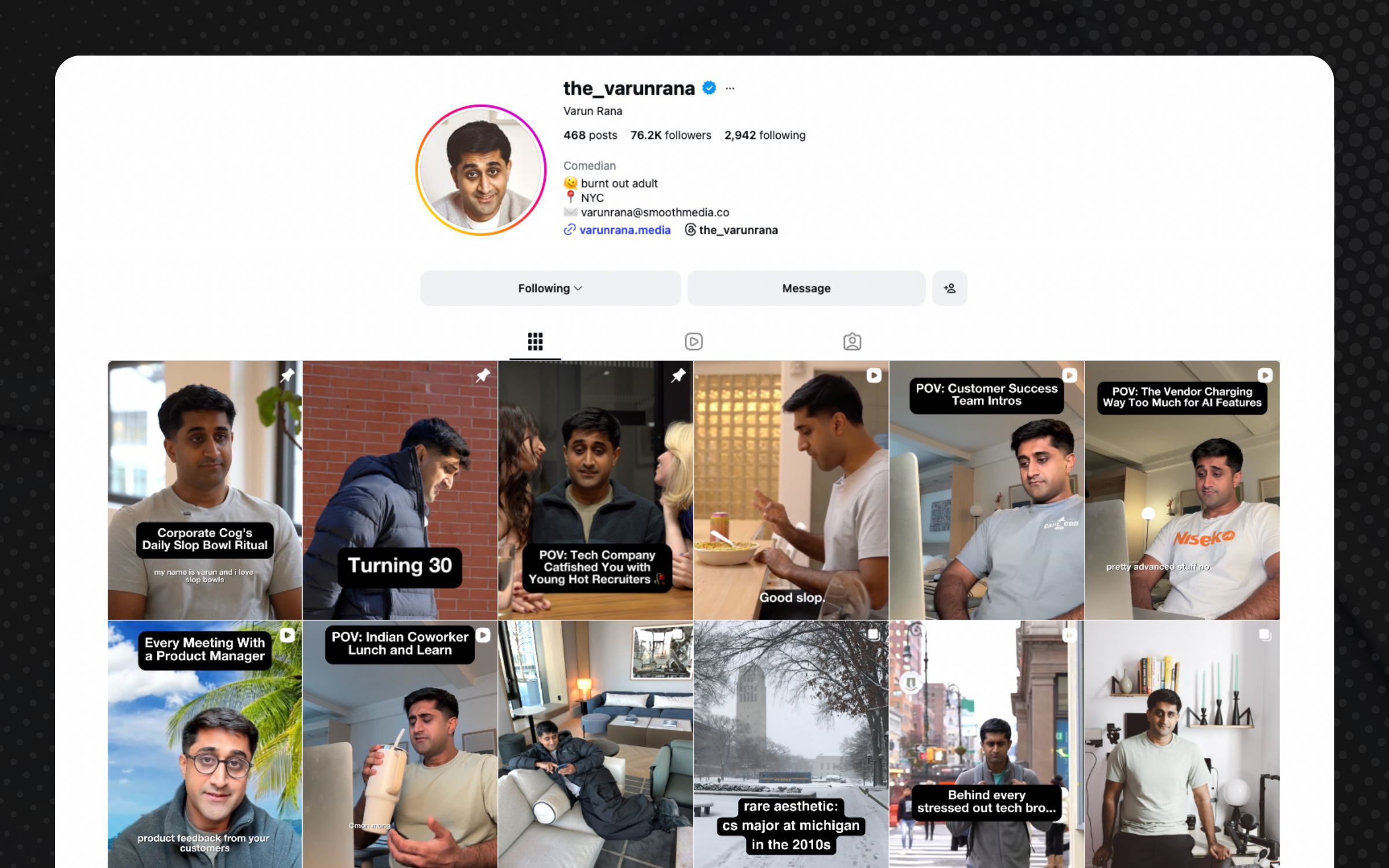 We sat down with Varun Rana, an NYC-based comedy creator who's turning sketch comedy about modern work into a full-blown media company. His story is a masterclass in what happens when you stop trying to do it all yourself.