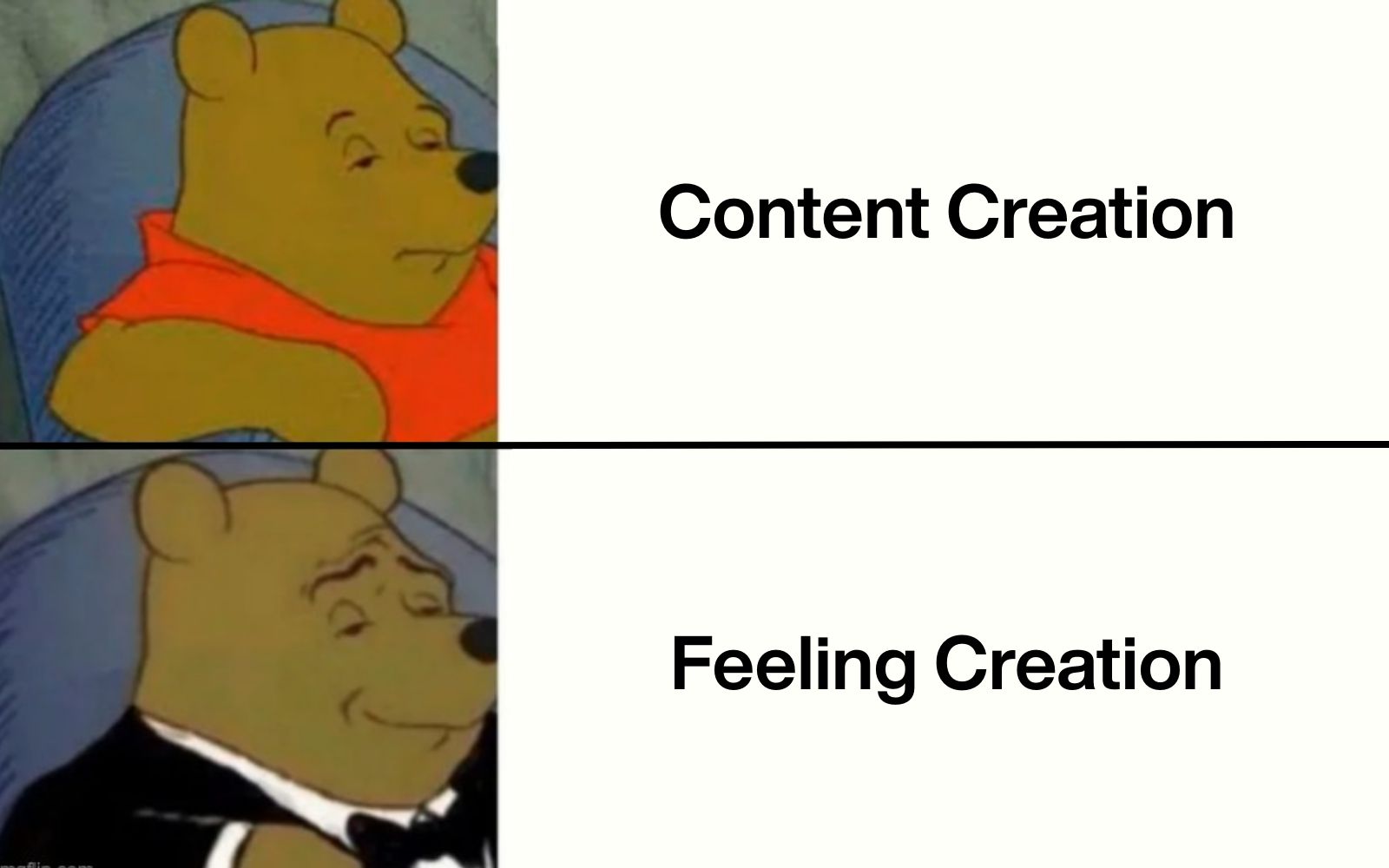 Feeling creation isn't about what you're showing people, of course, it's about how you're making them feel about it!