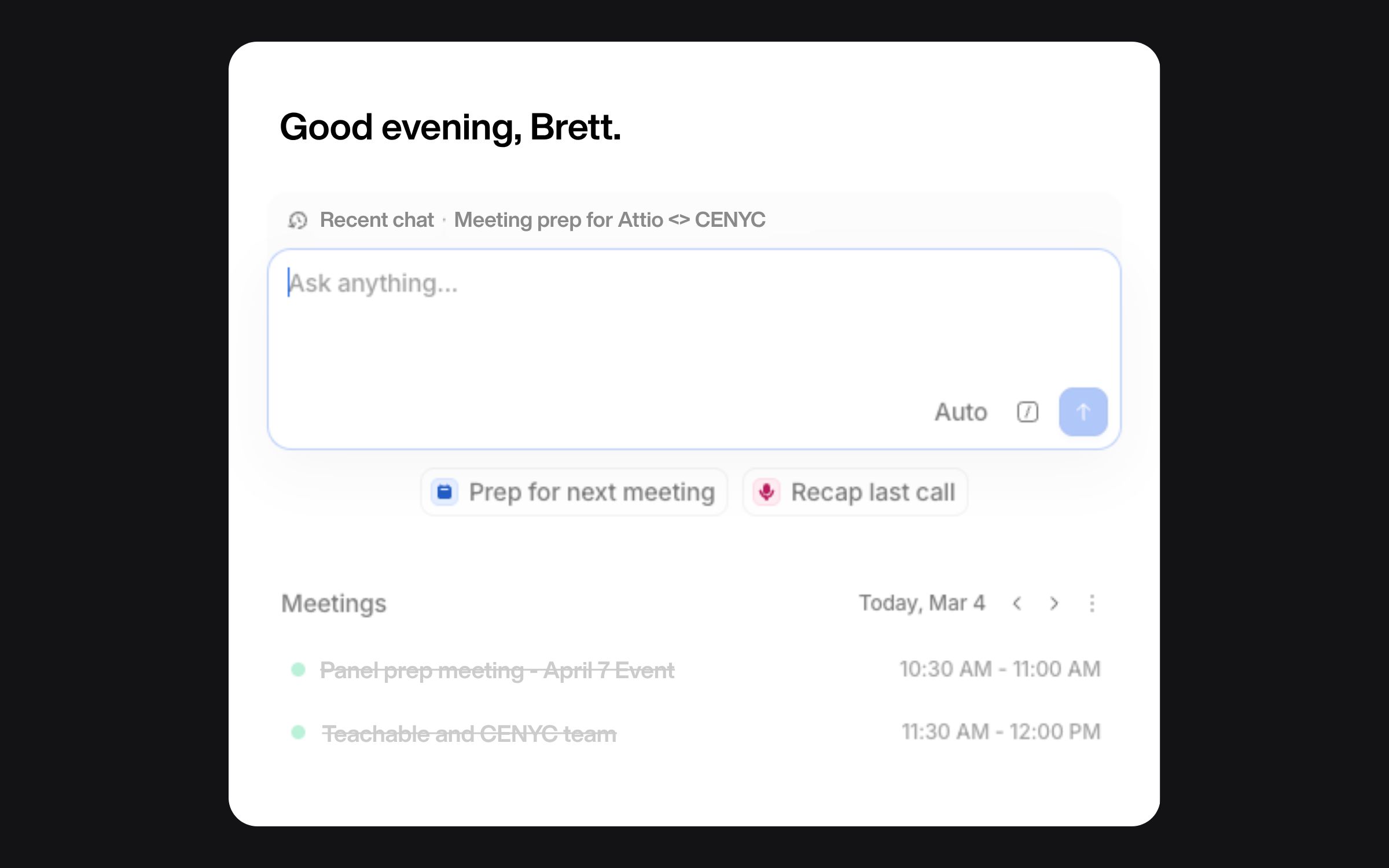 Stuff like: → "Prep me for my meeting with [brand] today" → "Which deals haven't had a touchpoint in two weeks?" → "Draft a follow-up to [brand] about Q2"