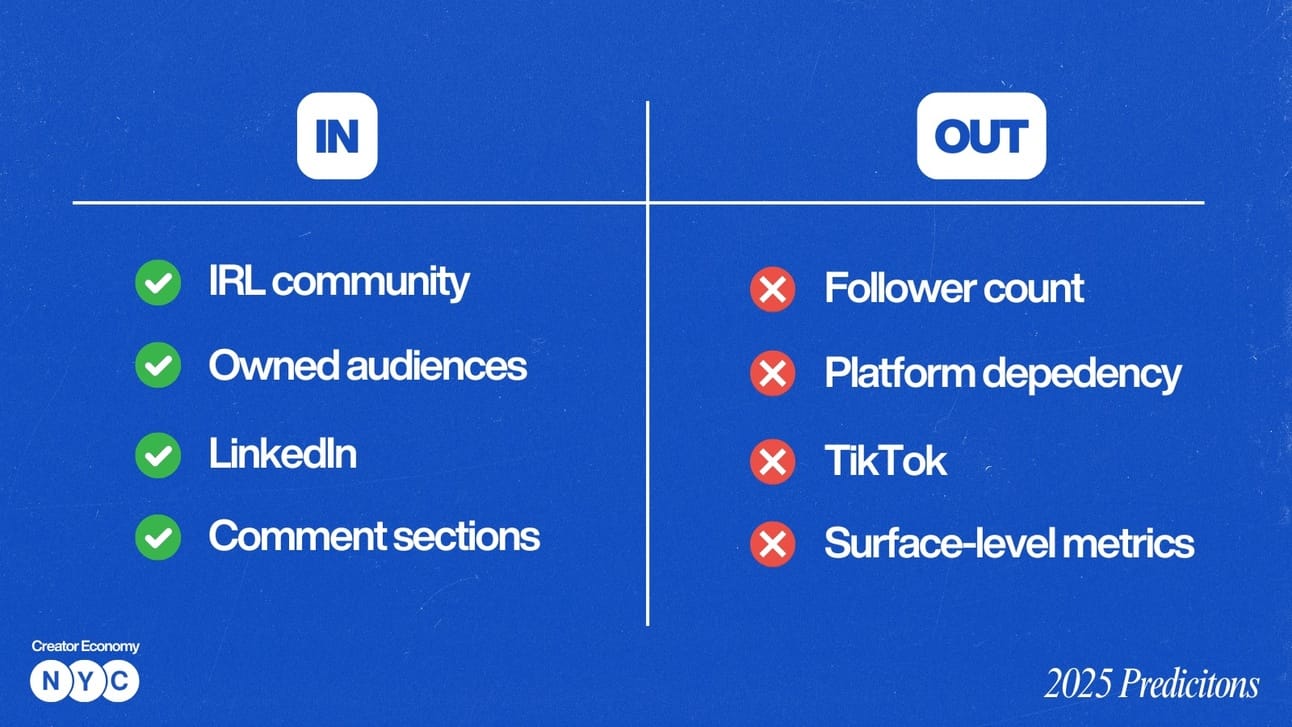 TLDR: 2025 will mark a decisive shift toward creators building in-person touchpoints with their audiences.