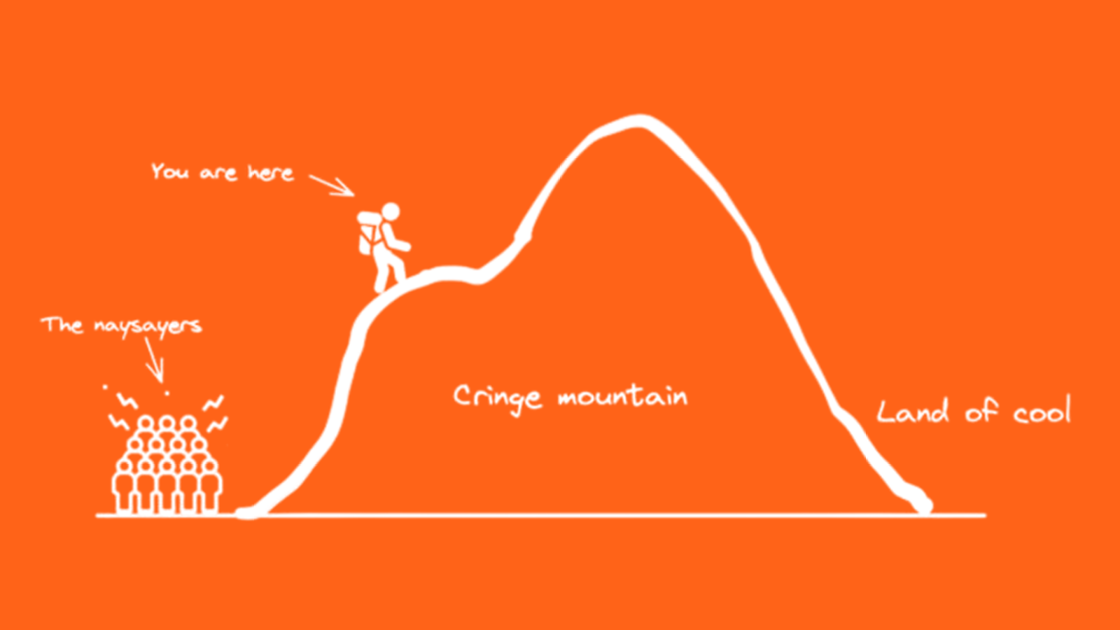 Every creator you admire has climbed this mountain at some point. The only reason you admire them is because they made it to the other side of Cringe Mountain.