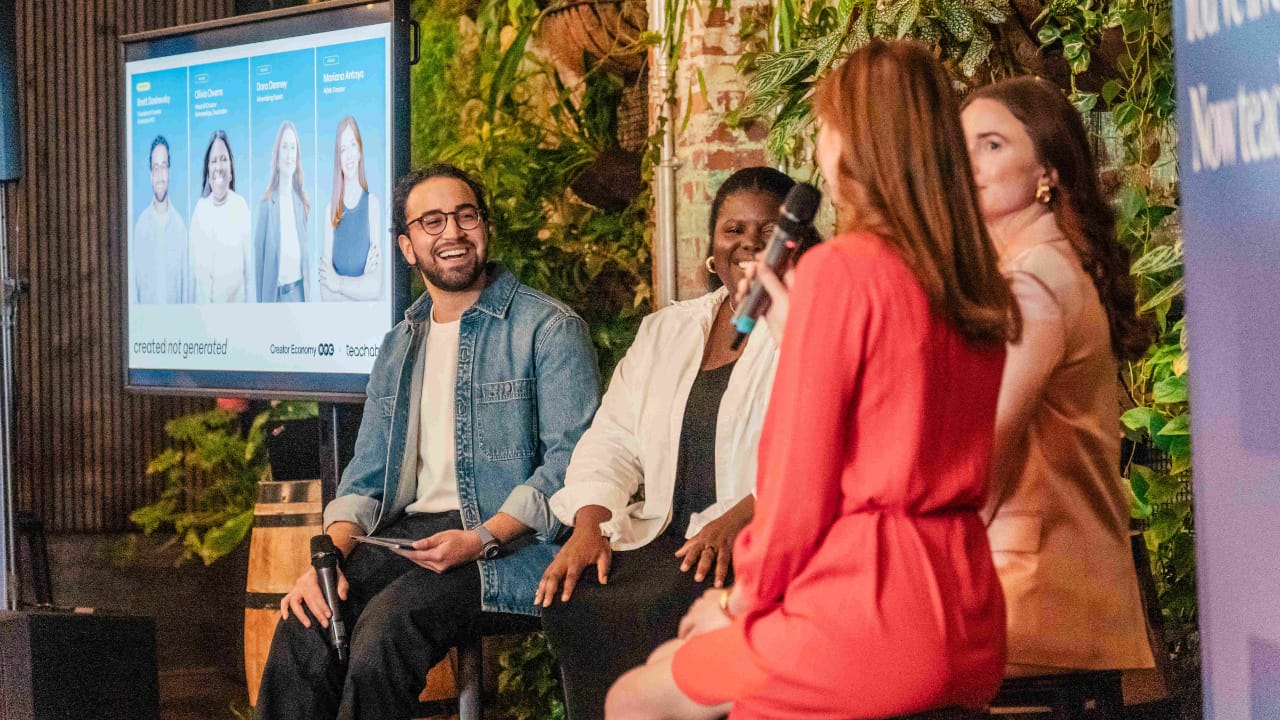 We brought together Dara Denny (advertising agency owner and full-time creator), Mariana Antaya (creator and full-time AI product manager at Microsoft), and Olivia Owens (Head of Creator Partnerships at Teachable, who helps creators make this transition every day).